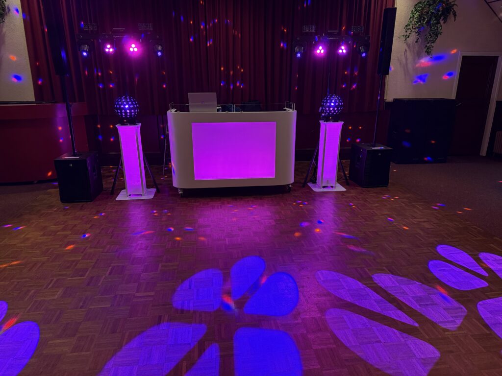 Leef je uit bij je favoriete songs, dansplaten & muziek met vrolijke verlichting, eventueel een groot vintage videoscherm of Led spiegelbollen! of extra uplights